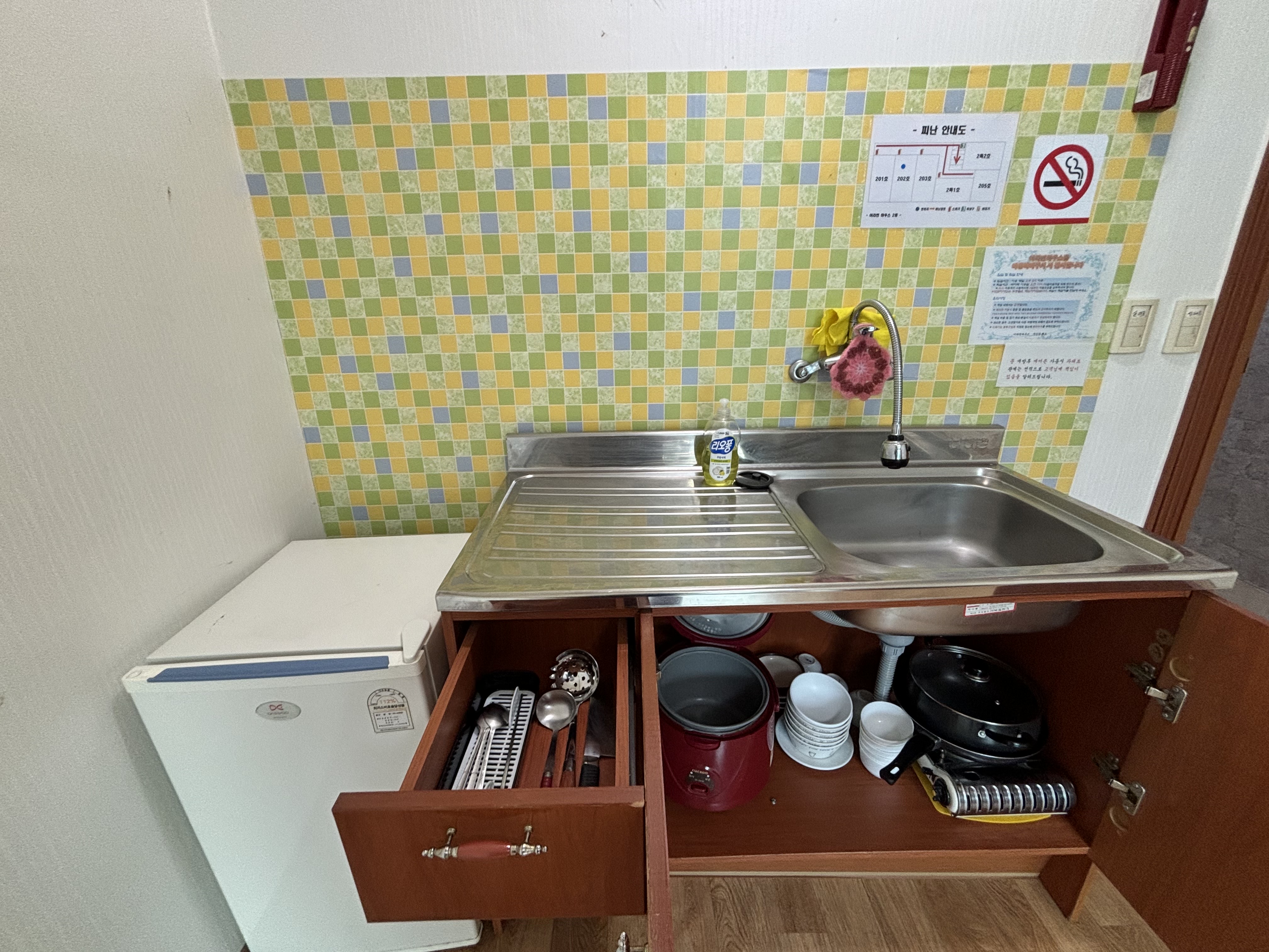 에어컨, 식기도구, 조리도구, 냉장고, 욕실