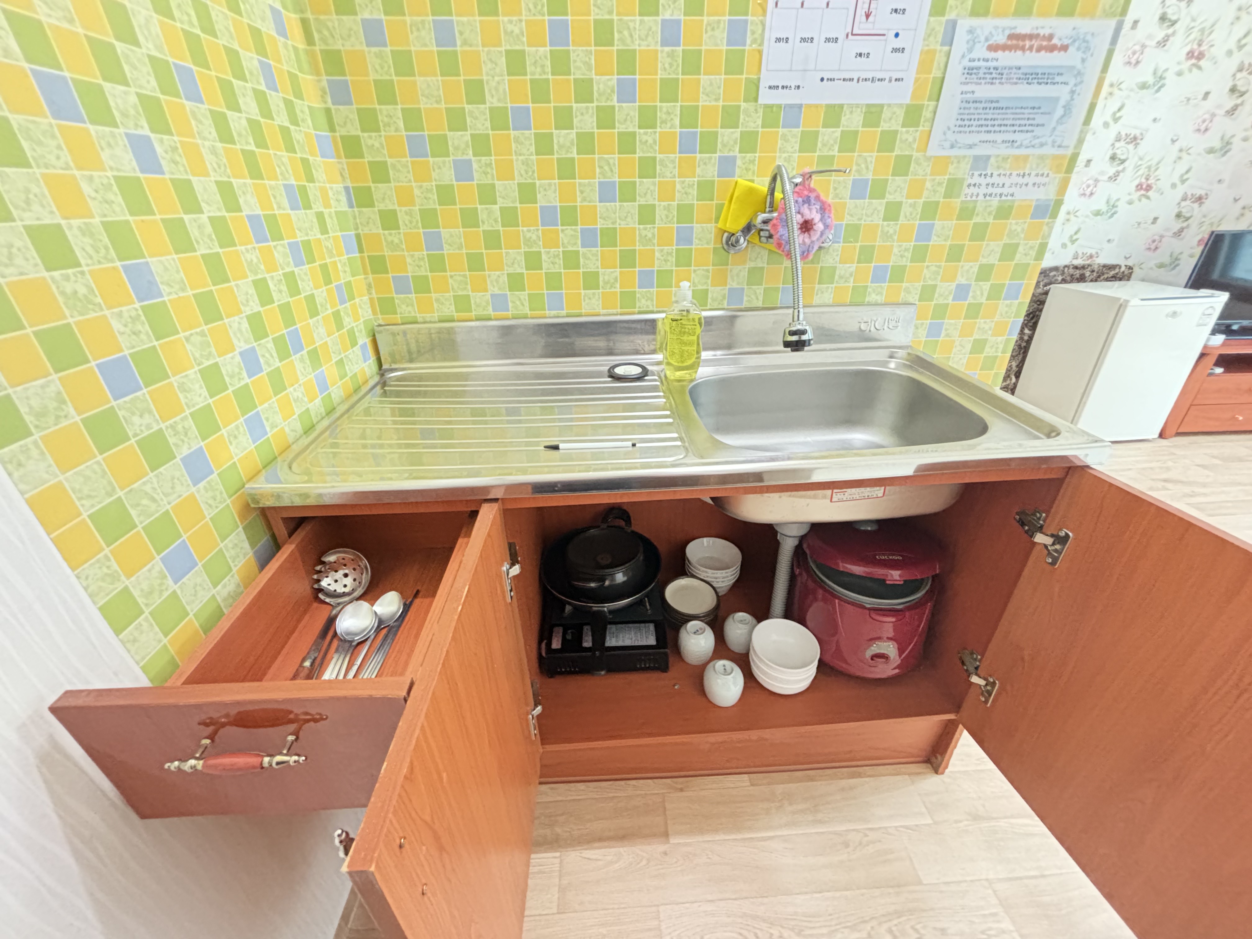 에어컨, 식기도구, 조리도구, 냉장고, 욕실